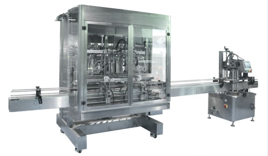 ③ 特性:采用单独的进瓶退瓶光电,上部进料采用单向阀的机械结构,伺服电机带动活塞缸使其灌装精度更加精准,调节灌装量更方便,确保机器高效而稳定的连续生产;设计的调整机构尽可能大,(包括标配114mm输送带,触摸屏调量,单头微调装置等)来适应各种瓶型的快速更换